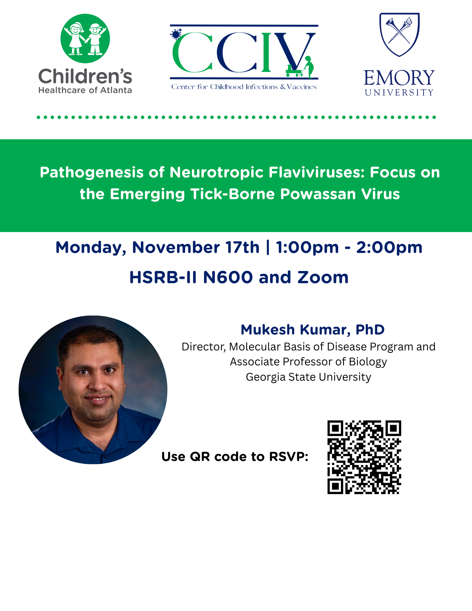 Dr. Mukesh Kumar is an Associate Professor in the Department of Biology at Georgia State University and serves as the Director of the Molecular Basis of Disease (MBD) program. He is a virologist and immunologist with expertise in RNA virus–host interactions. His laboratory investigates the cellular and molecular mechanisms underlying neurotropic virus pathogenesis, with particular emphasis on understanding how flavivirus infections lead to brain dysfunction. Dr. Kumar’s group has developed various in vitro and in vivo model systems to study the pathogenesis of positive-sense RNA viruses, including SARS-CoV-2, WNV, POWV, and ZIKV.