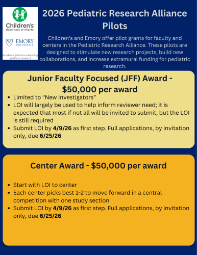 PURPOSE: To stimulate new research projects, build new collaborations, and increase extramural funding for pediatric research. Proposals should be aimed towards generating preliminary data for subsequent extramural grant applications.