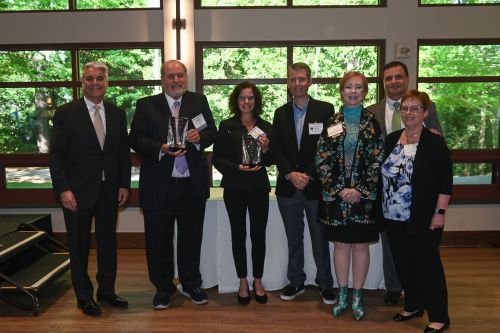 Pictured above: Gregory Fenves, President; Raymond Schinazi and Leda Bassit, inventors; Patrick Reynolds, case manager; Deborah Bruner, SVP Research; Todd Sherer, AVP Research; Jill Uhl, Chief IP Officer.